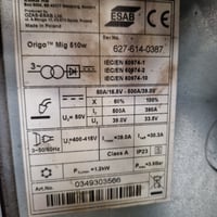 - Used Esab Origo-Mig 510w CO-2 welder - 500 amp.
