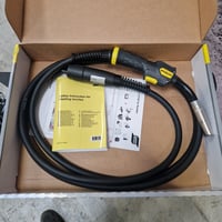 Leveres med topmonteret værktøjskasse og sidebeslag til sikker opbevaring af svejseslange, kabler og udstyr samt ESAB Exeor 315R4 svejseslange 4 m. som har fjernregulering af trådhastighed og volt/trim.