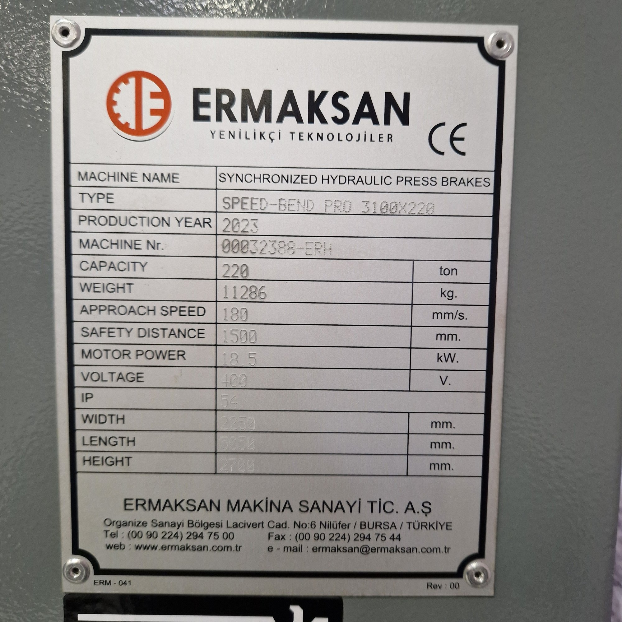 - Used Ermaksan Speed-Bend Pro 3100X220 hydr. 6-axis CNC press brake - 3100 x 220 t.