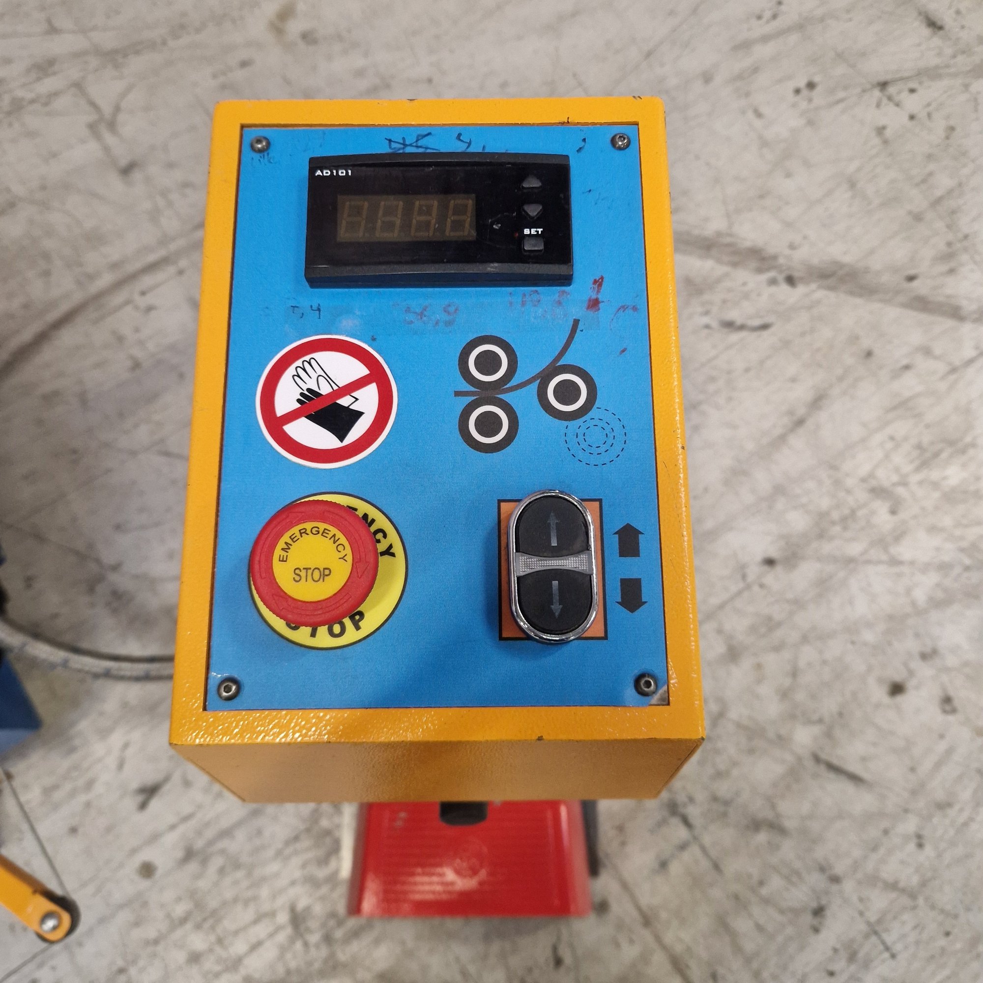 Asymmetrisk med motoriseret bukkevalse med digitaludlæsning, hærdede valser og spor til valsning af rundjern.